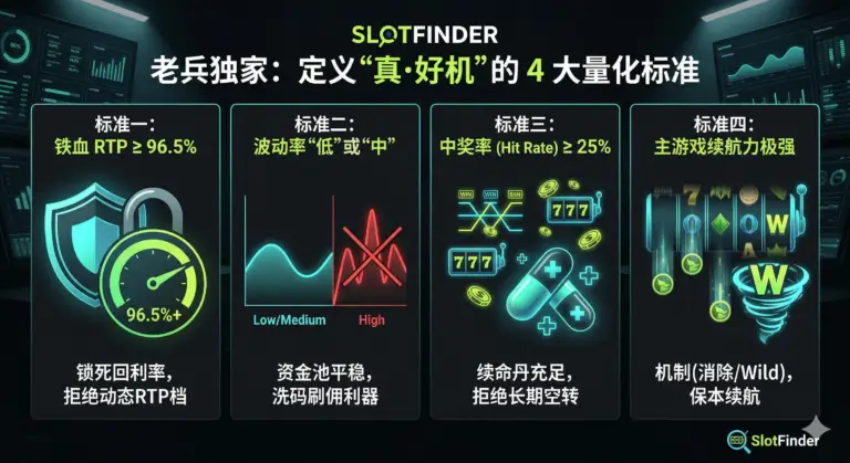 在 SlotFinder 的字典里,一款“好游戏”绝对不是看它的 Max Win(最大赢配)有多大,因为你按几十亿次旋转都未必能中;真正的标准是看它**“有多保本”,以及“刷流水(洗码)有多顺手”**。